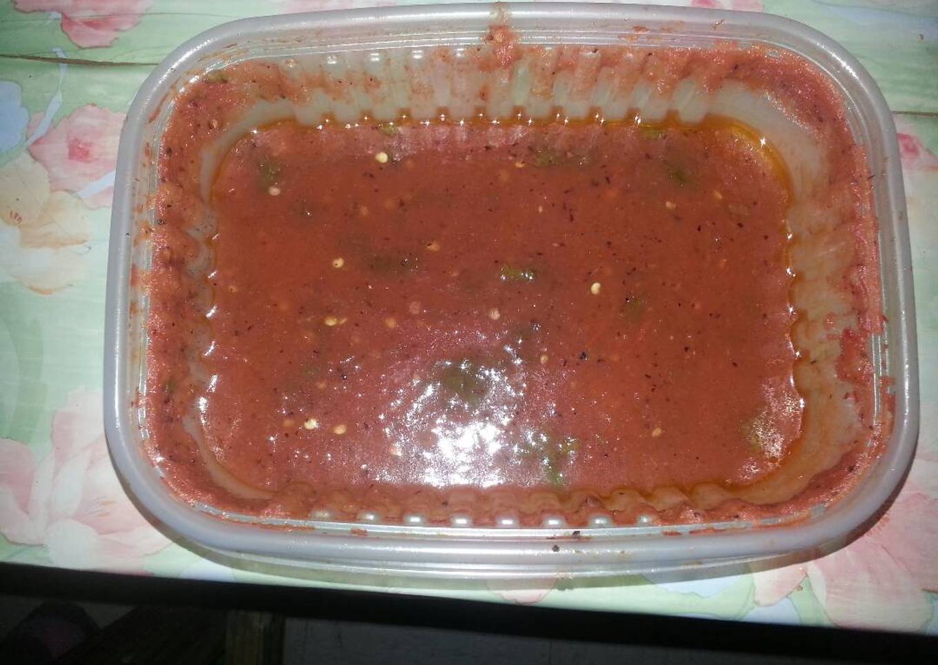 - En una sarten pon el aceite y cuando ya este caliente hecha lo que moliste anteriormente y deja calentar poco, pero sin que llegue a hervir.