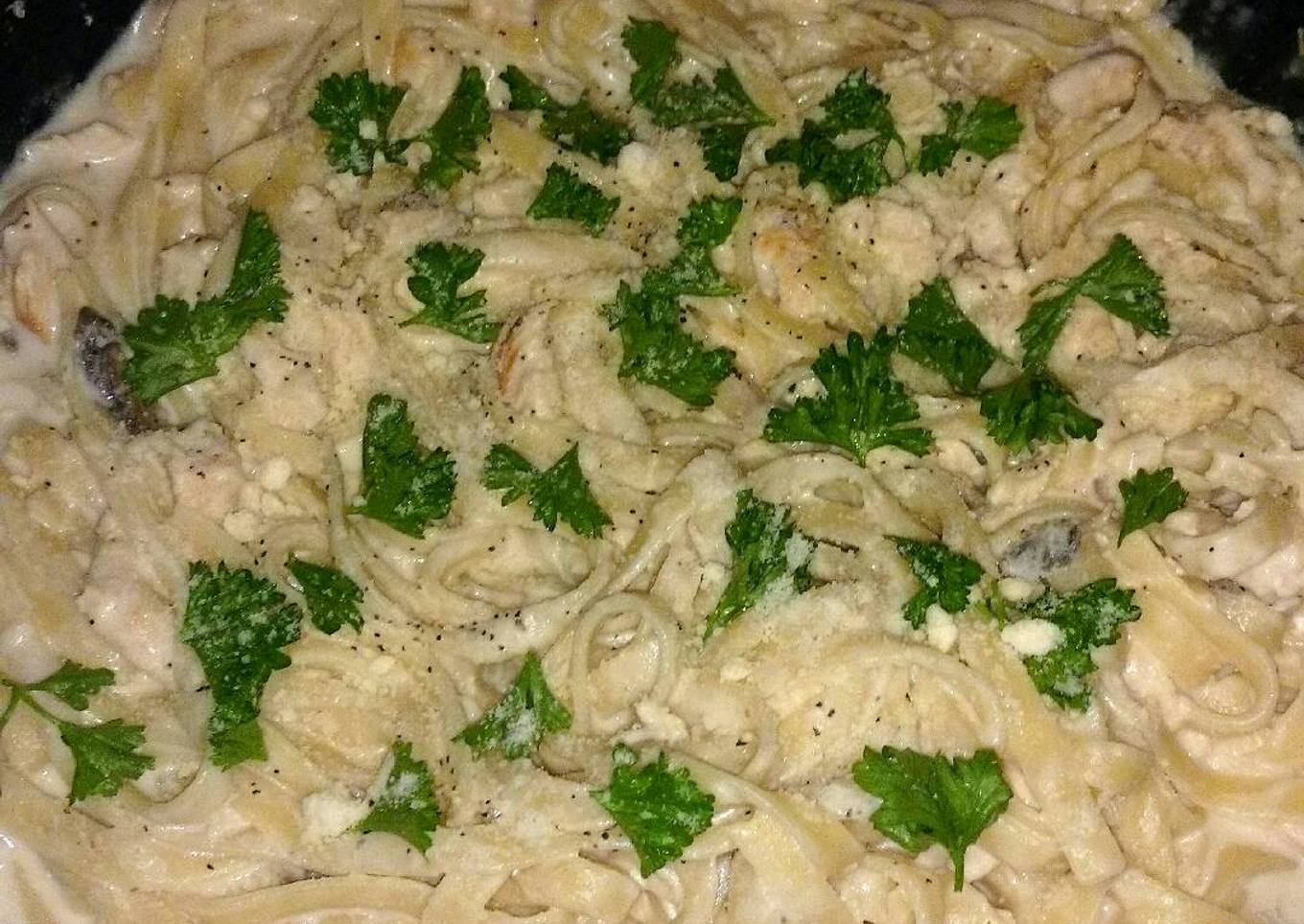 - Una vez lista agregamos la pasta y sólo mezclamos y la dejamos un ratito para que la pasta agarré el sabor se la salsa Alfredo, para un sabor más intenso sólo hay que agregar más parmesano.
