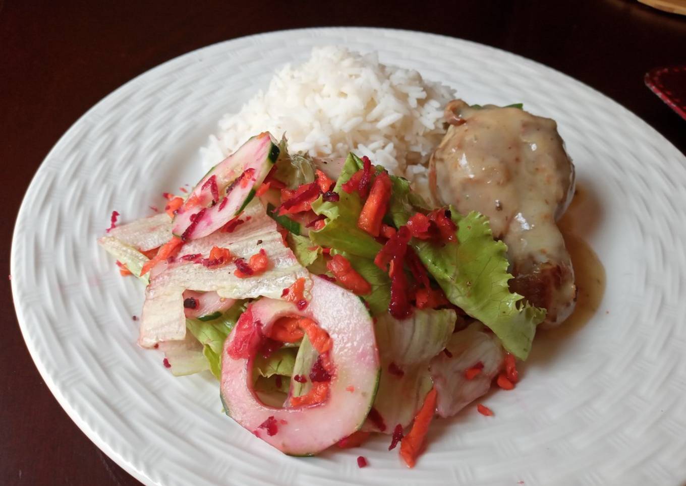 - Hacemos el arroz por 2 tazas de arroz 3 tazas de agua luego hacemos la ensalada rallamos zanahoria y la remolacha