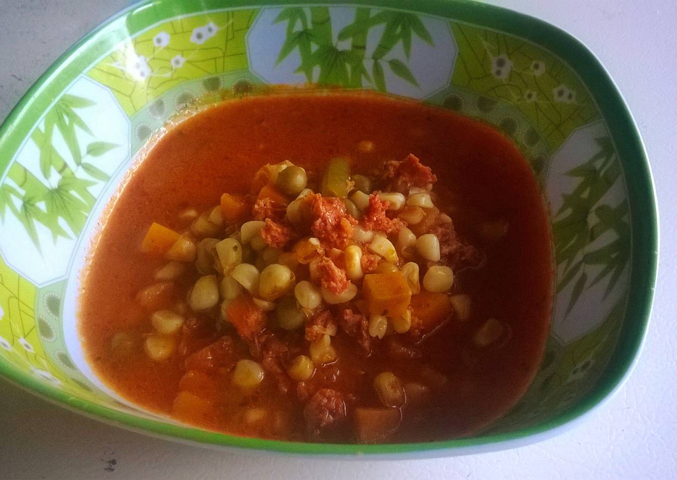 Sopa de chorizo elotes y verduras