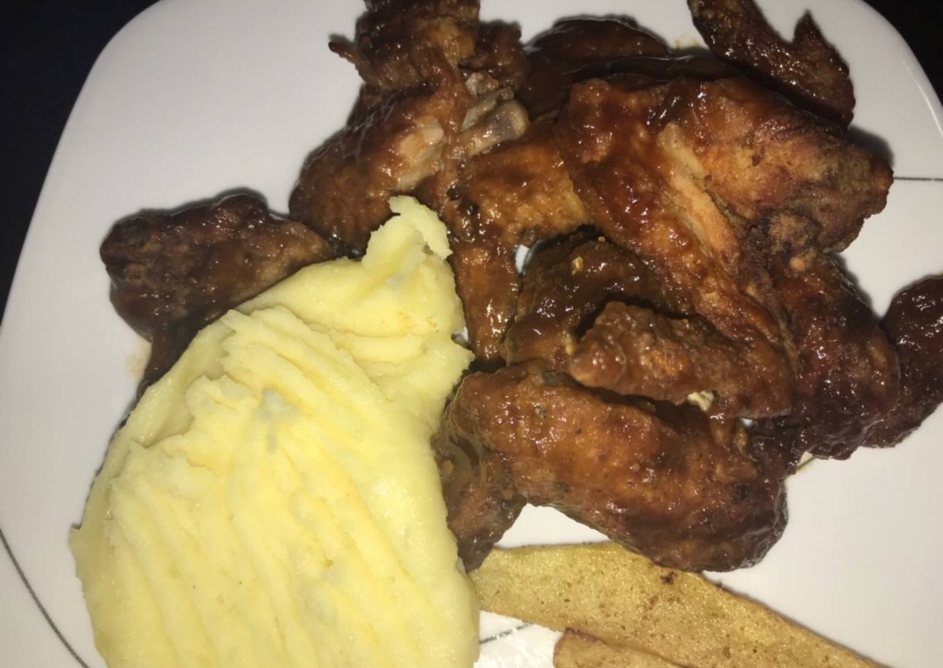 - Así quedó nuestro plato, lo acompañamos con puré de papas nos toco 7 alitas a cada uno😱😱😱