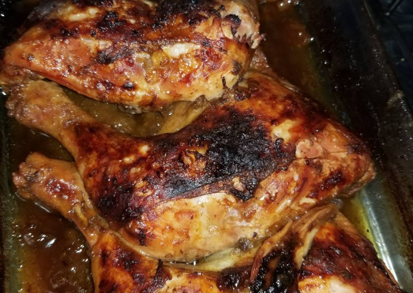 - Mezclar la marinada de pollo con la mermelada, untar esto encima de las piezas y colocarlas en un pyrex en el horno a 200°C, tapado con papel de aluminio por 20 minutos