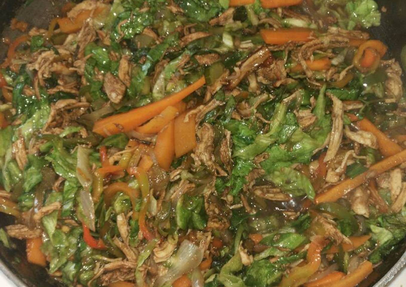 - Encima echa la salsa de soya hasta que el pollo cambié de color y 3 cucharadas de salsa lizano