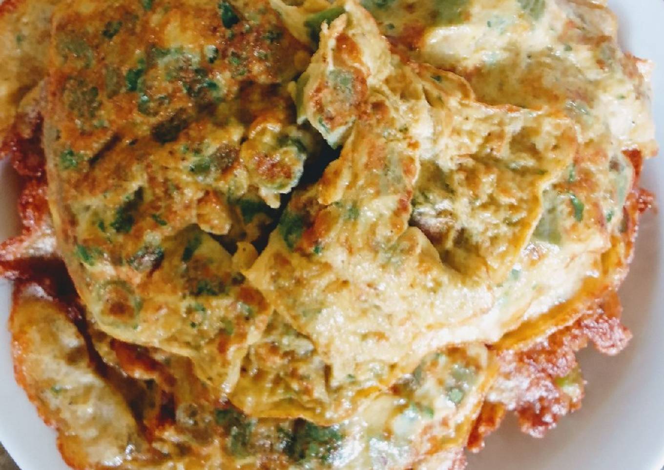 Tortilla de judías verdes (vainicas o poroto) con espinaca, huevo