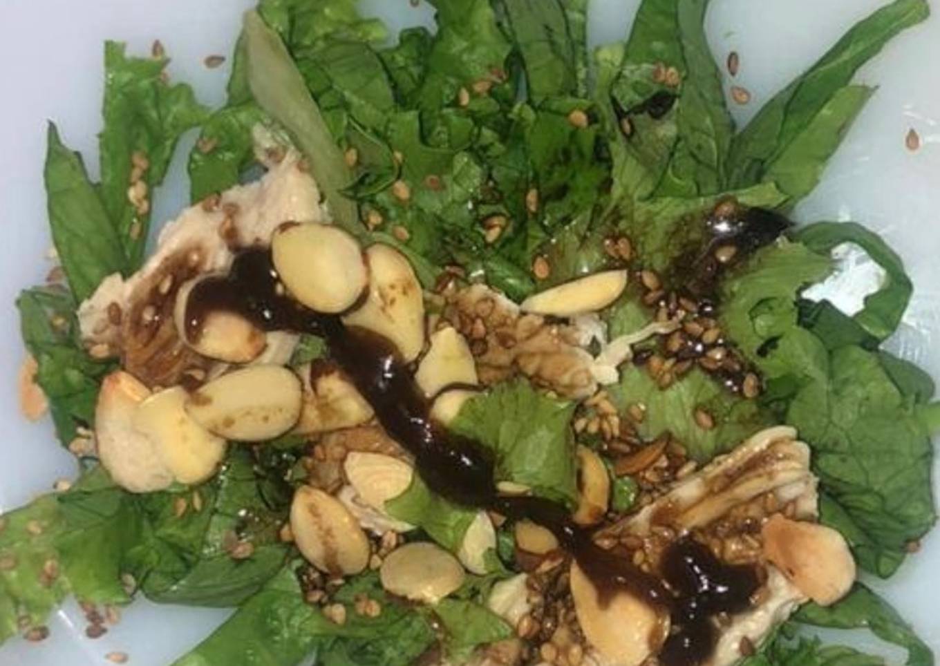- Colocar en plato cama de lechuga pollo, vinagreta, ajonjolí y almendras