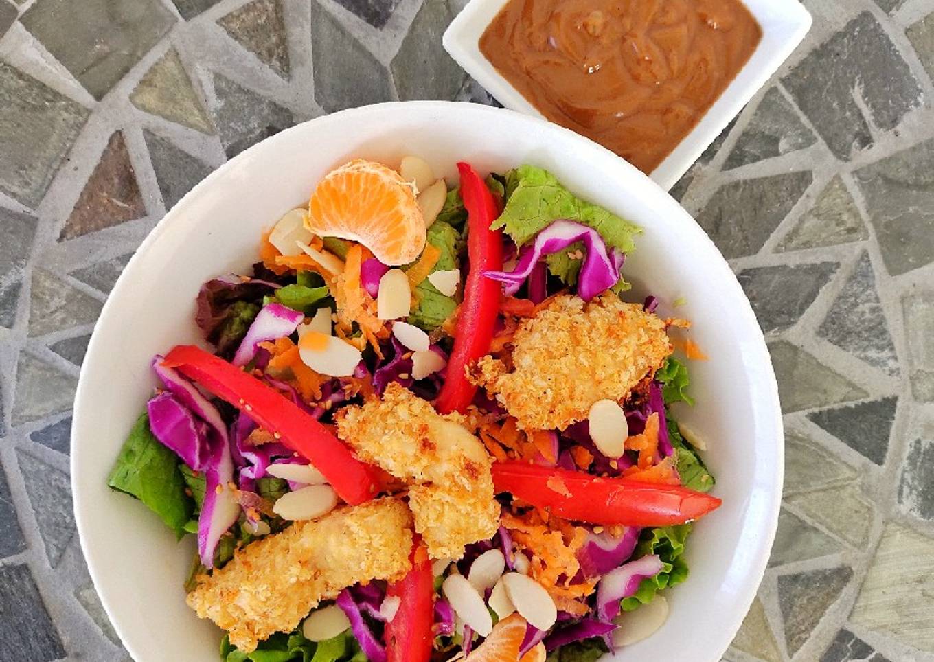 Así que aquí les traigo mi versión de la ensalada oriental con aderezo de maní.