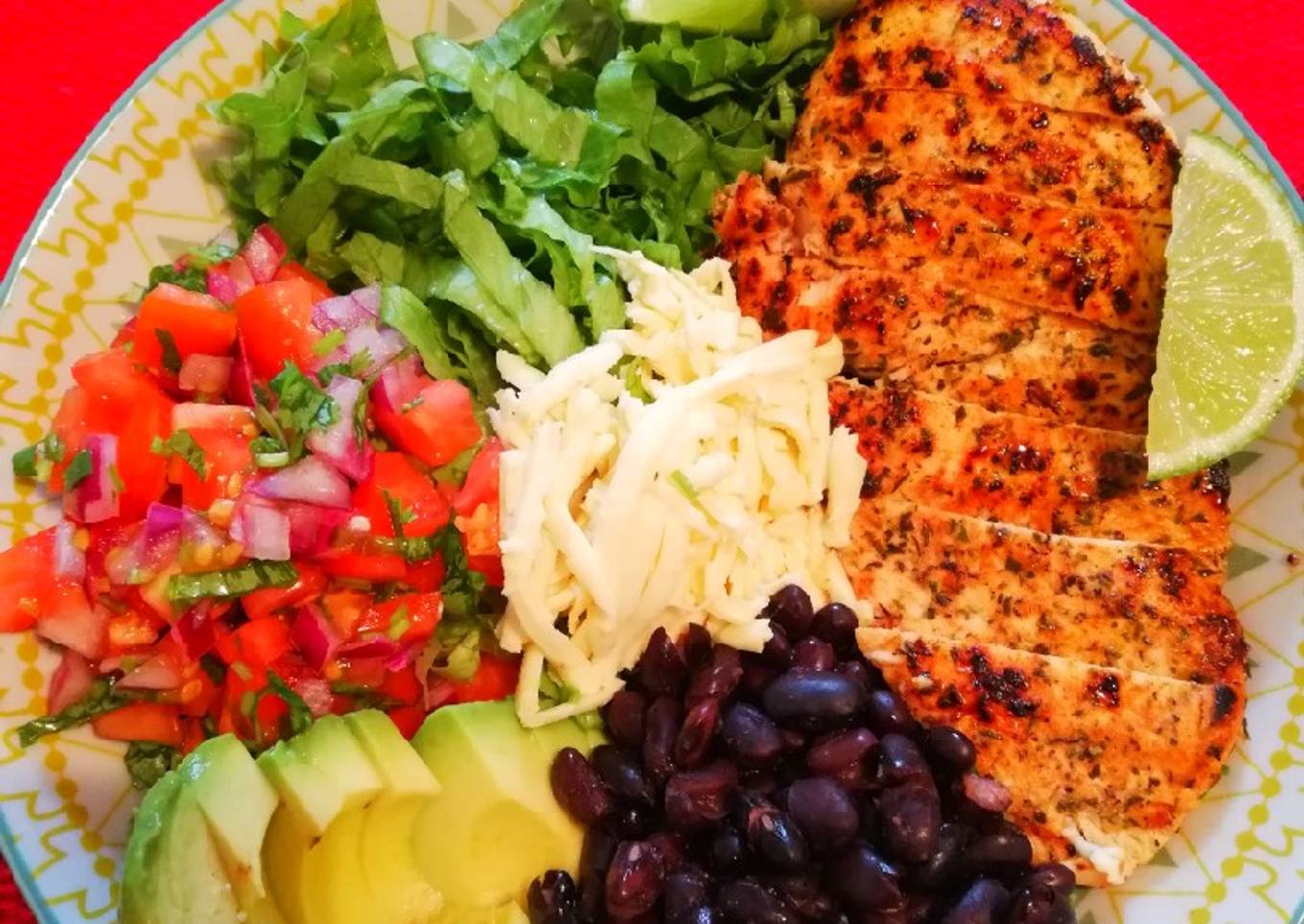 - Servir con ingredientes a su gusto, yo en este caso quise agregar todos los macros, frijoles negros, aguacate, queso rallado, ensalada.