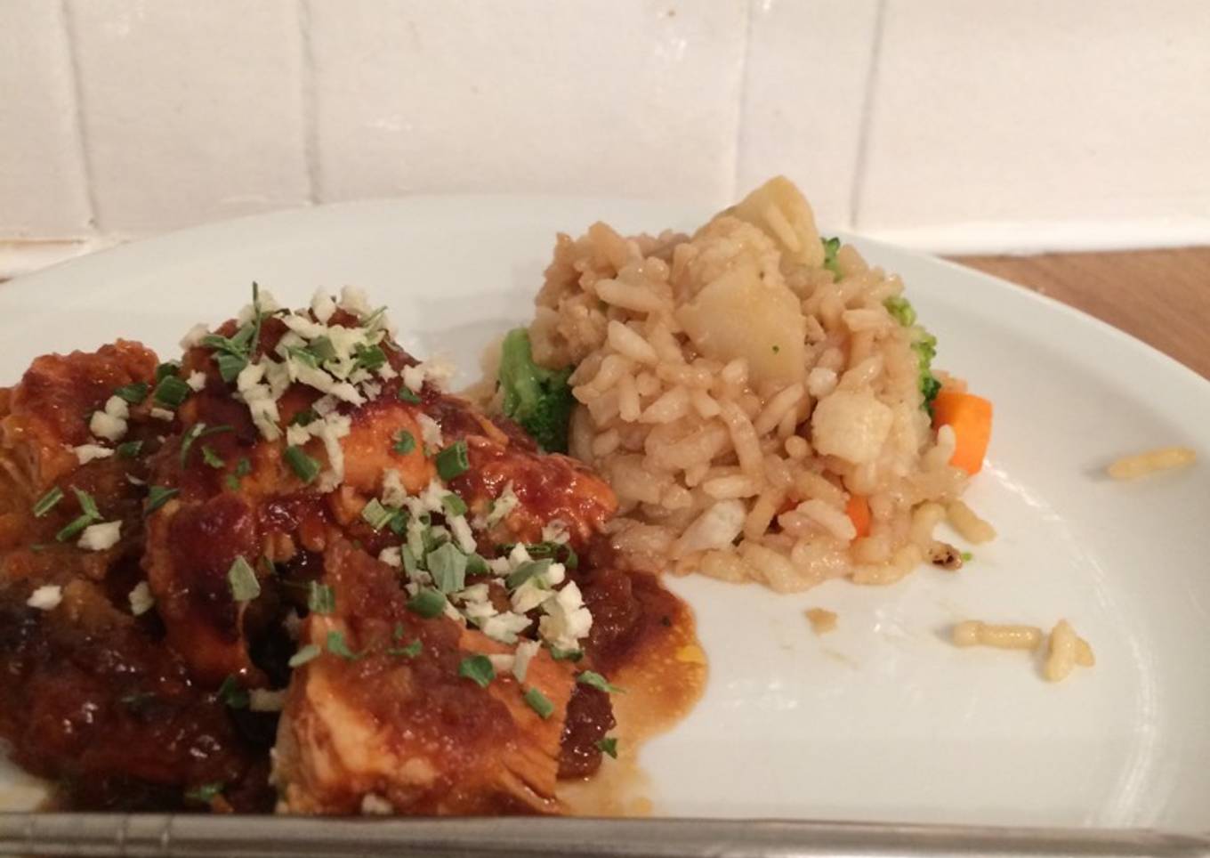 - Luego la salsa inglesa, maggy y tomate
