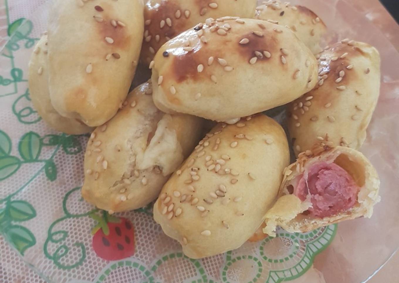 - Ponemos en una bandeja previamente engrasada con aceite, brocheamos con la yema del huevo y esparcimos una semillas de Sésamo por la superficie. Al horno por 20 minutos a 200 grados.